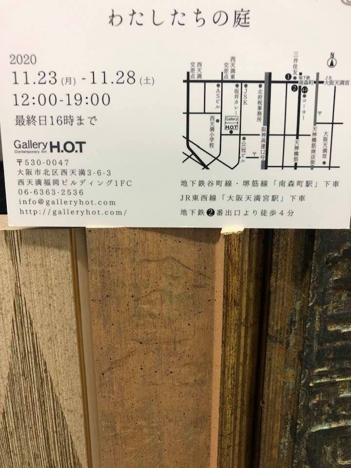展示会のお知らせ 2020/11/17 わたしたちの庭 ギャラリーH.O.Tスタッフ展のお知らせ いつも額装でお世話になっておりますお客様の展示会がありますのでお知らせいたします。 わたしたちの庭 ~かつてあなたがしってるのとは違うわたしたち~ 日時:2020.11.23(月)~11.28(土) 12:00~19:00 最終日16時まで 場所:GallaryH.O.T 〒530-0047 大阪府大阪市北区西天満3-6-3 西天満福岡ビルディング1FC 紙版画などの展示となるようです。 素敵な作品が並ぶ予定ですので、みなさま是非ご覧ください。