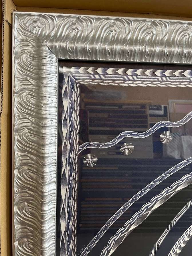 アルミフレームのスカーフ額装もシンプルで素敵ですが、木製モールディングのフレームでのスカーフ額装も