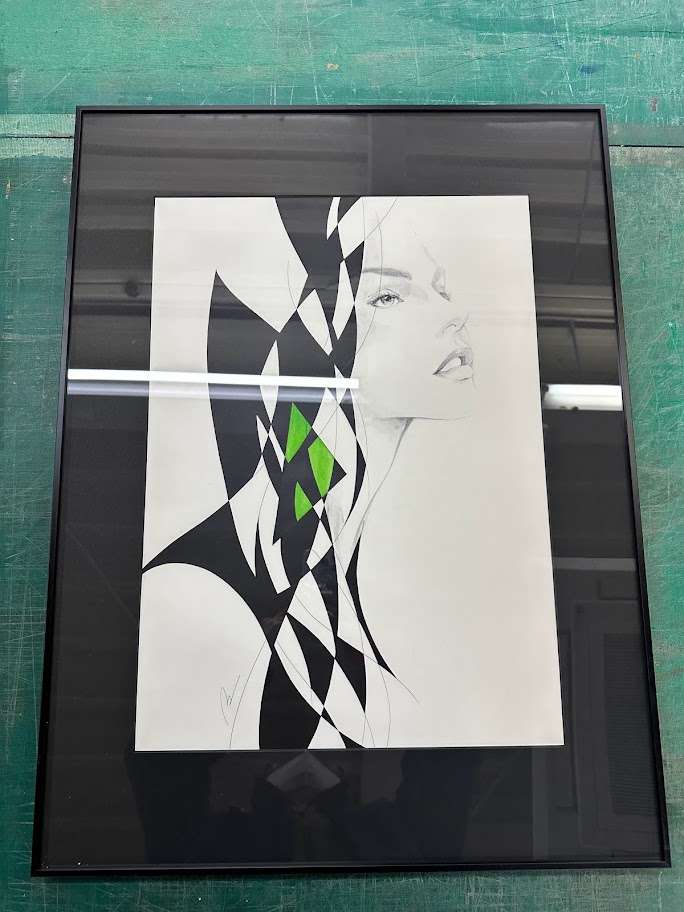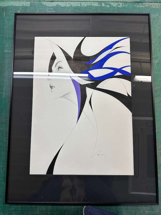 同じ規格のフレームとマットで統一感のあるフレーミングになっており、作者の描く美しい女性たちを引き立てている作品となっております。